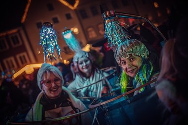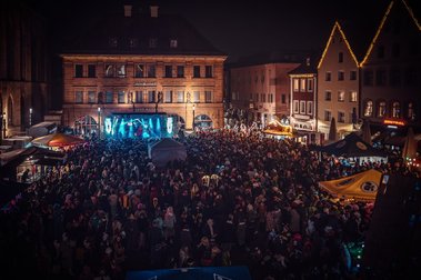 Um 18 Uhr geht es dann richtig los: Nach der Eröffnung durch Oberbürgermeister Michael Cerny startet DJ reto mit allen Feierwütigen in den Abend. Eine Stunde lang macht er mit tausenden Hexen, Zauberern, Lampenschirmen, Mäusen, und allem was dazu gehört Party. Dann rocken die Quertreiber los und der Marktplatz bebt bis um 23 Uhr.