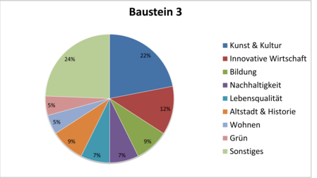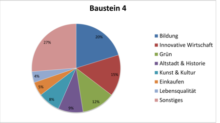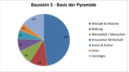 Alle Antworten auf den Bausteinen (insgesamt 465 Stück) wurden ausgewertet und in Themen zusammengefasst, woraus sich folgende Markenpyramide für Amberg ergab:
