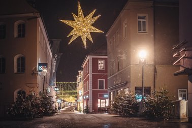 Verzauberte Altstadt, wundervolle Stimmung. Die Bäume des Winterzaubers verschönern auch dieses Jahr wieder Amberg, geschmückt von engagierten Bürgerinnen und Bürgern.